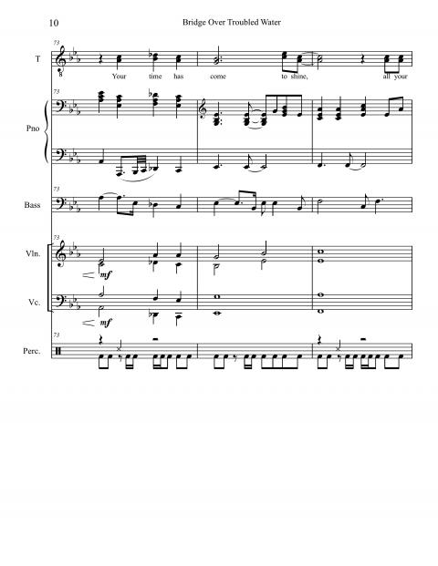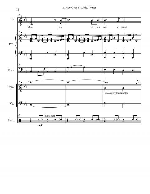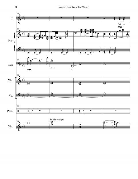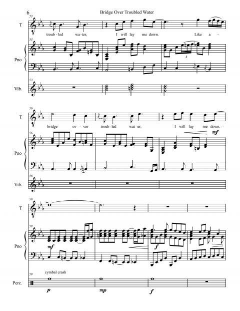 Examining the score, it’s hard to account for the amount of texture, color, and powerful emotion coming from just voice, piano, bass, percussion instruments, and a string section. The musical skeleton of the song is laid bare in this score, but still, it only shows the components of the structure. A score can’t indicate the innumerable musical subtleties, inflections, and other intangibles that make this recording so compelling. It’s the sum of all of the parts that assured “Bridge” a place among the iconic entries of the Great American Songbook.