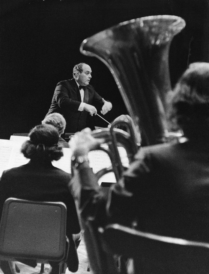 Professor John Bavicchi conducting Berklee's concert band in 1974.