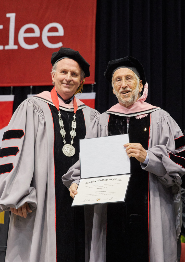 After receiving the honorary doctor of music degree from Roger Brown, Neil Portnow said, “If you follow your dreams and keep an open mind on how to achieve them, anything is possible. [That’s] what happened to me.”