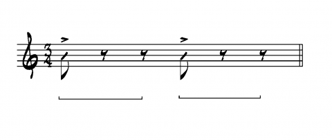 The term cycle indicates the time it takes for a rhythmic unit to play from beginning to end and begin again on the downbeat of a succeeding measure. For example, eighth notes phrased in four in 3/4 time require two measures before the rhythmic unit begins again on the downbeat of the third measure. This two-measure cycle will consist of three units of eighth notes phrased in groups of four (see example 1 in sidebar).