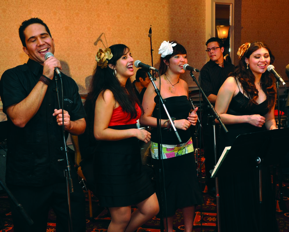 Members of the Berklee Salsa Ensemble performed in the World Music Room.