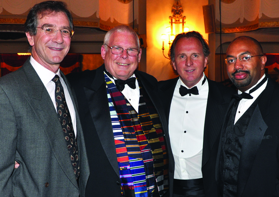 From the left: Berklee Board of Trustees Chair Jeffrey Shames, Gala cochair Elliott Hillback, Roger Brown, and Gala cochair Carmichael Roberts.
