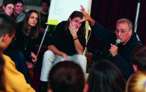 Berklee’s Assistant Vice President for International Programs Greg Badolato speaks to students in Belgrade, Serbia.