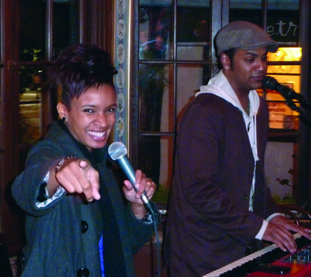 From the left: Angela Johnson-Swan and Jason Joseph perform at the Berklee L.A. Alumni Chapter holiday party.