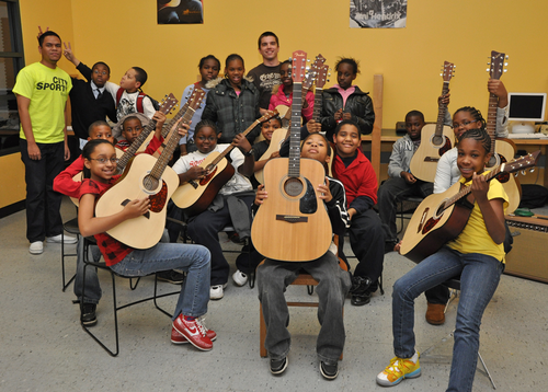At the Blue Hill Boys & Girls Club music clubhouse, Devon Clarke gets to play guitar.
