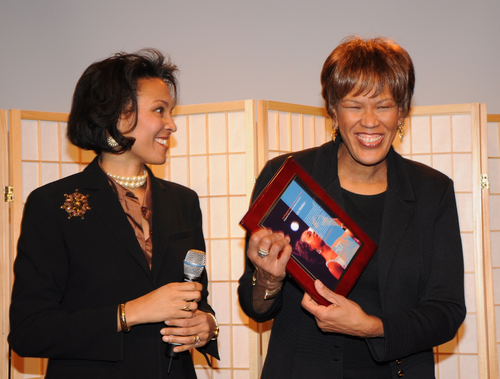 Krystal Banfield, director of Berklee City Music, Boston, presented award-winning journalist Liz Walker with a plaque at the annual Unsung Heroes Breakfast at Berklee on January 24. Berklee City Music paid tribute to Walker for her significant contributions to the local community as an educator, artist, and mentor. Walker also spoke on a panel discussion, moderated by Banfield, addressing youth empowerment along with Mary Flannery from RAW Arts, and Jane Money, of the Boston City Singers. The Unsung Heroes event also included live music by the Berklee City Music All-Stars, the City Music Preparatory School Ensemble, Bloco AfroBrazil, and Eguie Castrillo.