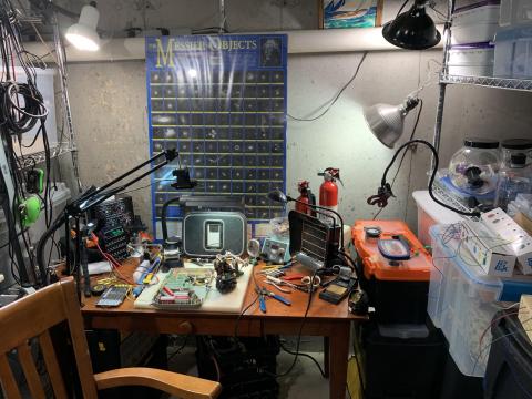 Another of Boulanger's remote teaching work stations. Note the circuit-bent Furby toys on the right.