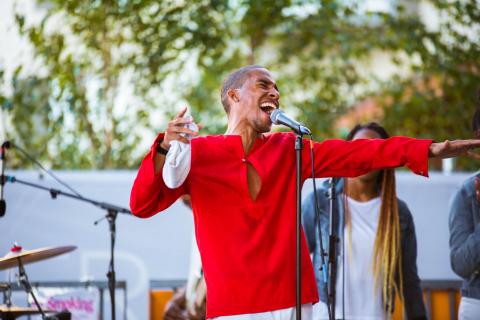 A few seconds into the video of Dreion's performance live from Symphony Park in Boston, you'll understand why audience member and Berklee staffer Abria Smith took out her phone and started filming. Dreion's energy as he and his band sizzled through a James Brown tune took command of not just the audience present for the performance, but now of viewers all over the world. Smith's video has amassed 1.2 million views on Facebook, and the play count grows by the minute, with over a thousand enthusiastic comments to scroll through (here's Berklee's President Roger H. Brown: "that's what I'm talking about—the funky medicine we need more of in Boston").