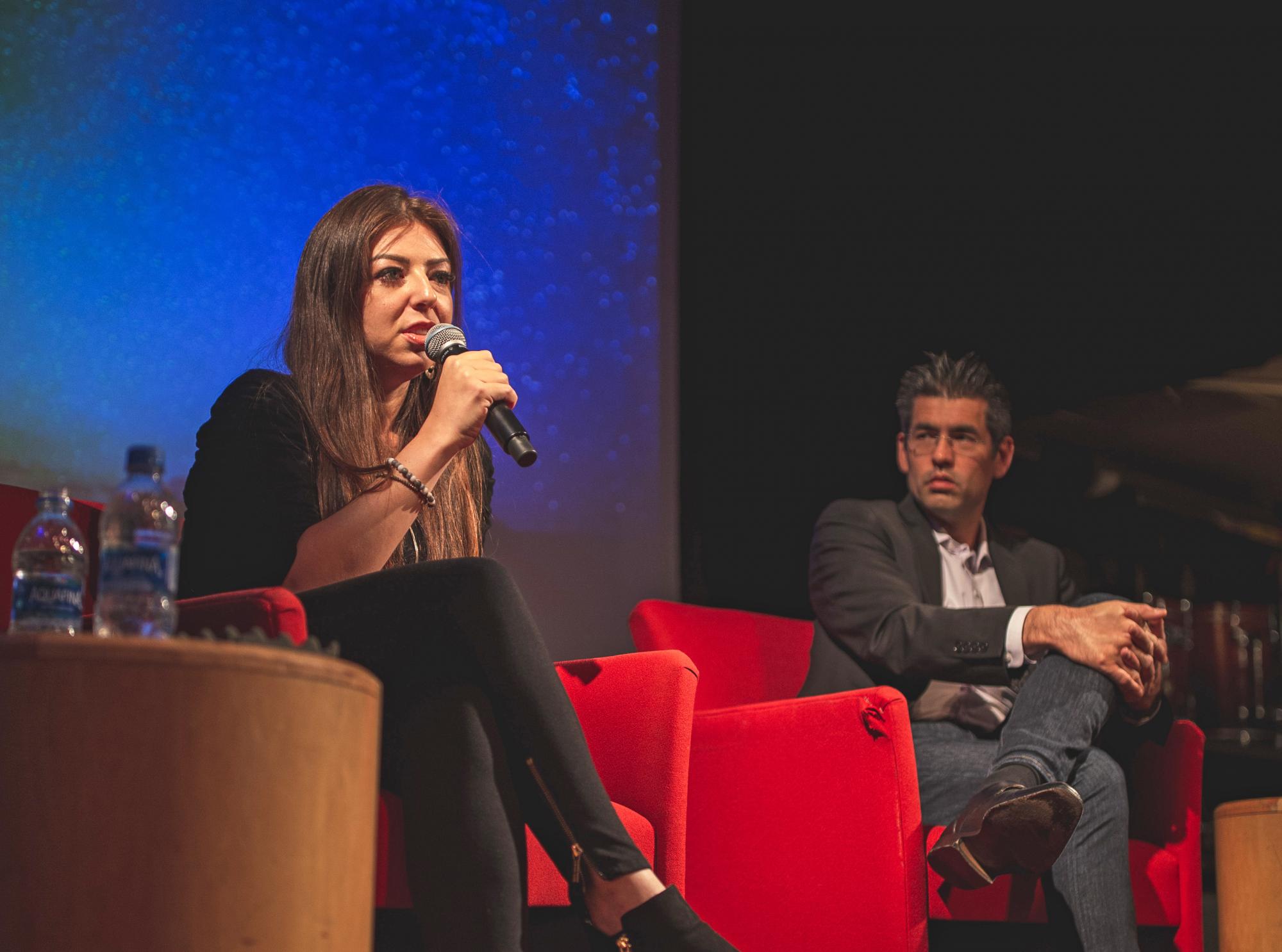 Pinar Toprak with Sean McMahon, chair of Berklee's Film Scoring Department