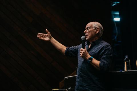 Jimmy Buffett spoke to students at the Berklee Performance Center.
