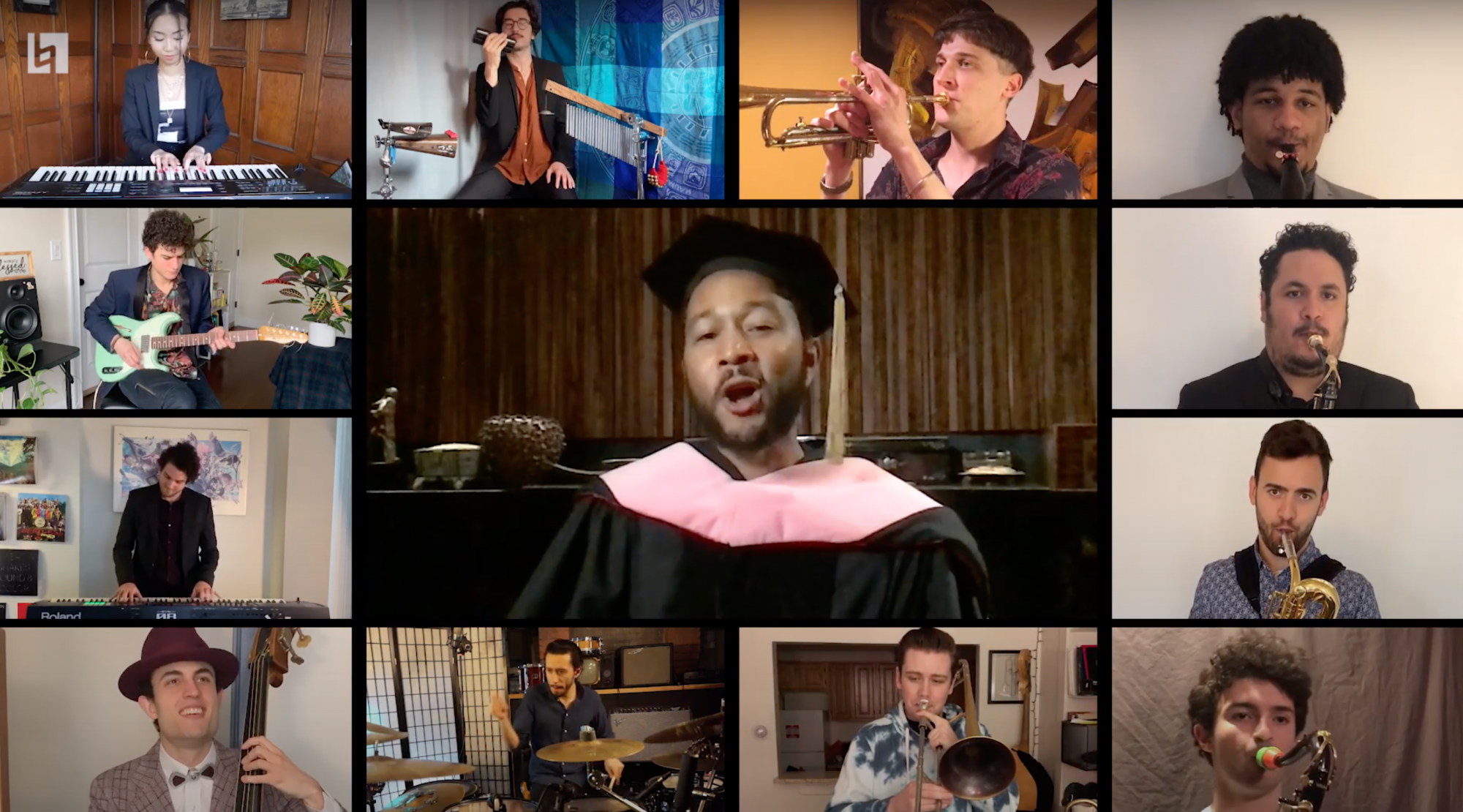 Berklee College of Music honoree John Legend performs with students in the 2020 commencement concert.