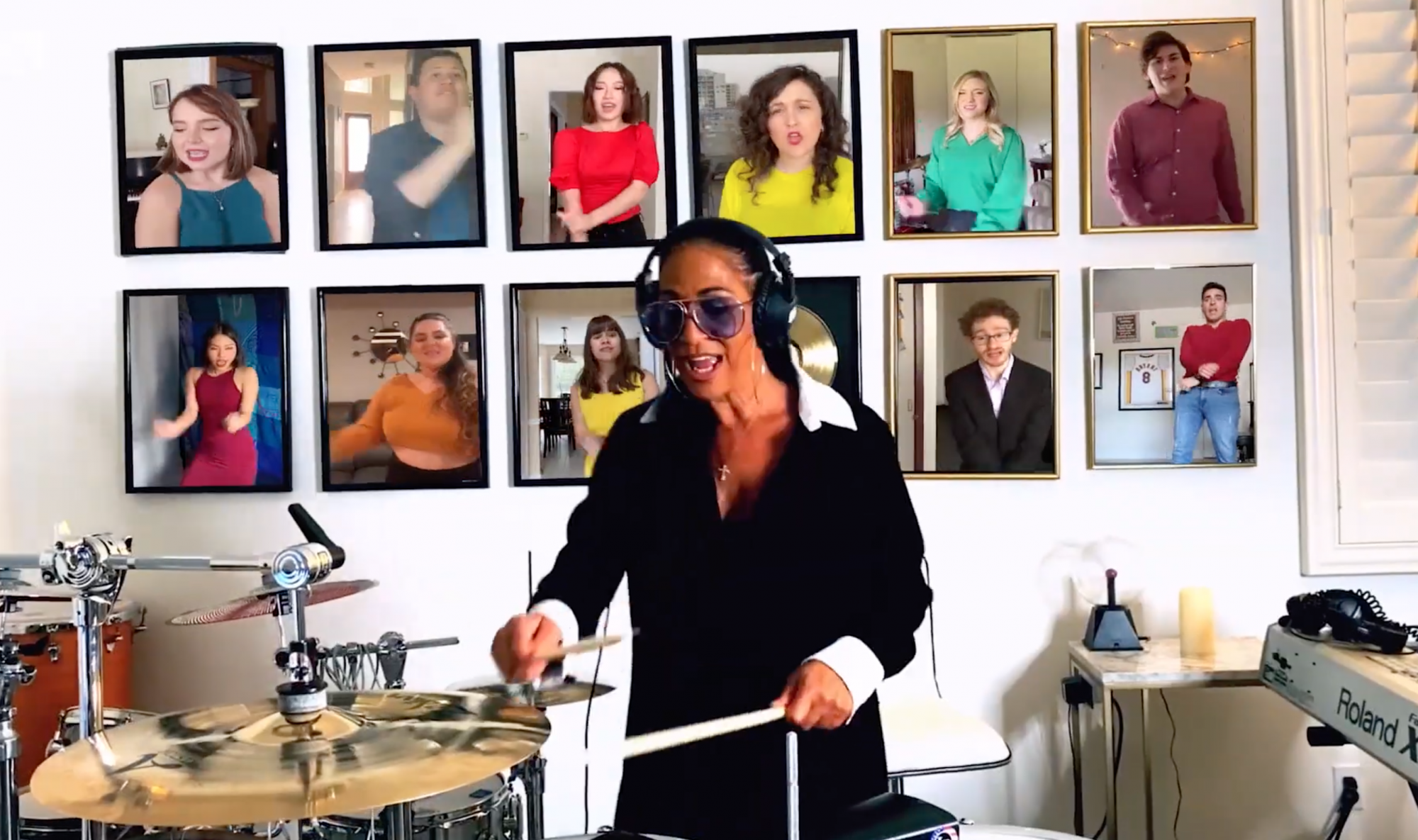 Speaking from her home while standing in front of a drum kit, legendary performer Sheila E. applauded the class of 2020 and offered words of encouragement. “Each of you are amazing, wonderful, talented, beautiful, confident, strong, and brilliantly gifted,” she said. “As you pursue your goals, I encourage you to take this entire experience with you—the successes, the mistakes, the hardships, and the joys,” she continued. In closing, she discussed the power of music and its impact, saying, “Music is healing; it can save someone’s life. It saved mine.”