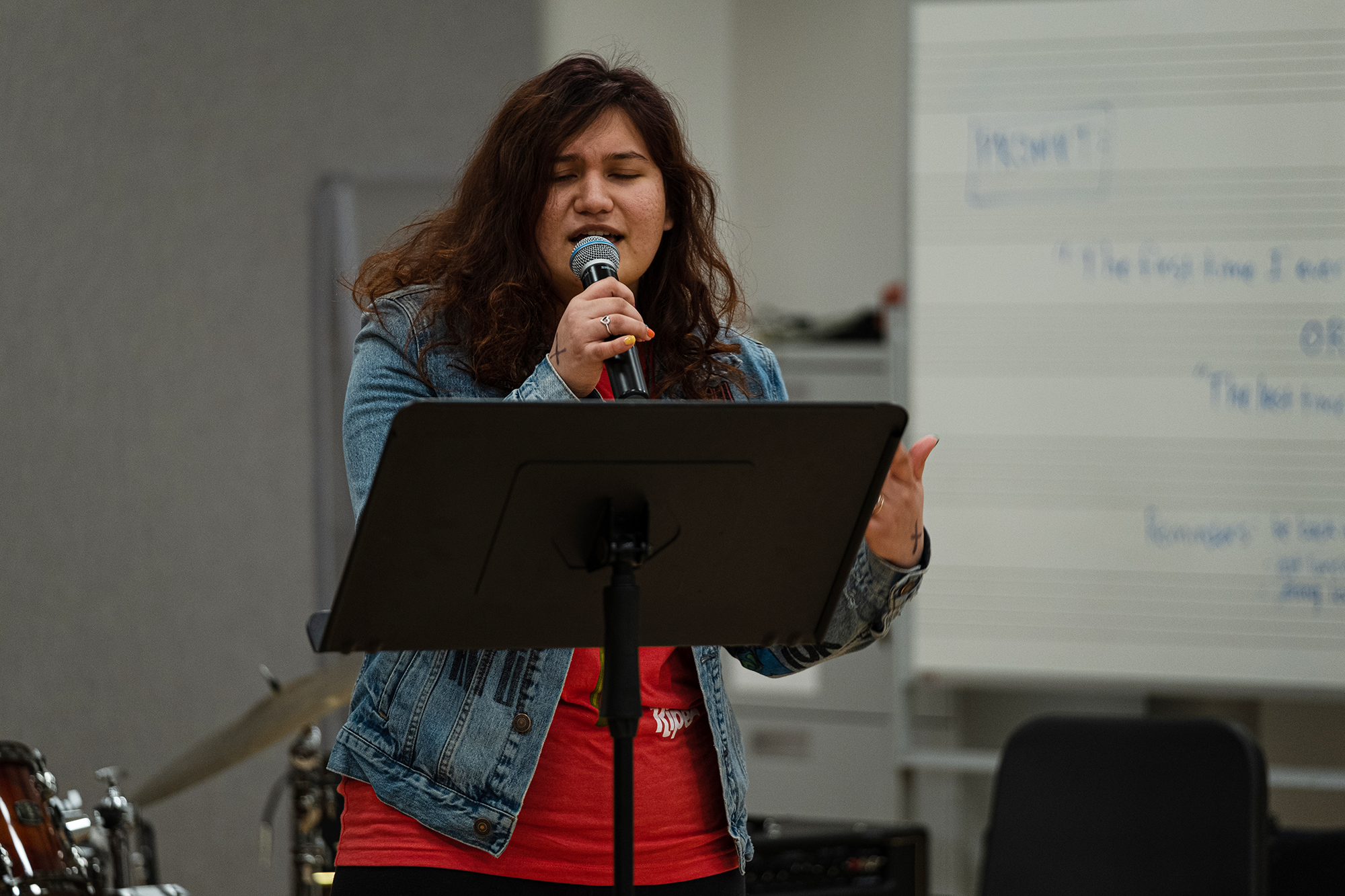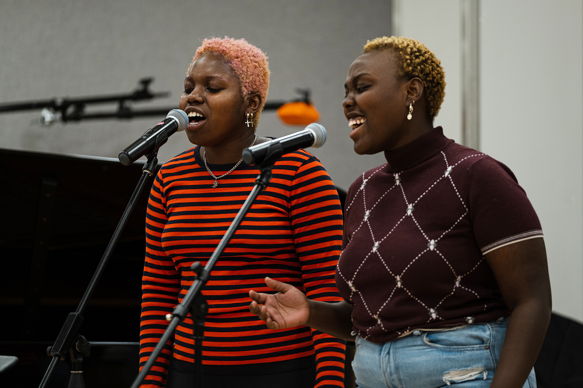Produced by the Songwriting Department’s student leadership council (SLC), the event brought together participants from a variety of majors, experience levels, and musical genres. Barra, the faculty mentor for SLC, said she wanted to create a space for students with varied experience to come together for an engaging day of music making. Hayes agreed, saying the event “invites newer students who are still trying to find their scene into the world of performing for each other and meeting students who share their interests.” The event gave students a chance to hone multiple skills—composition, collaboration, and performance—while building relationships and having fun.