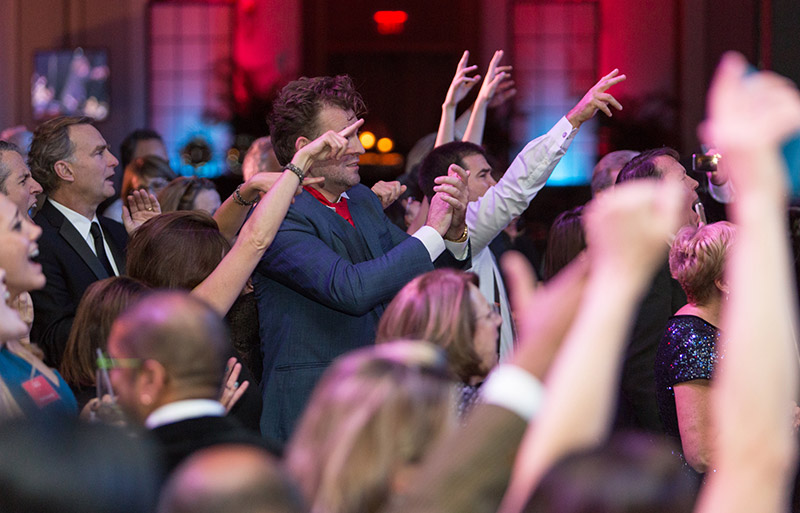 Throughout the night, the black tie- and ballroom gown-clad attendees bid on a number of auction items—everything from lavish vacation packages to a recording session at Berklee—and meandered from one themed music room to another across multiple floors of the Boston Marriott Copley. In addition to headlining act Michael McDonald H ’11—the singer-songwriter and five-time Grammy winner who has performed with the Doobie Brothers and Steely Dan and who has written hits for everyone from Van Halen to Patti LaBelle—more than 150 Berklee students performed in assorted rooms throughout the venue.