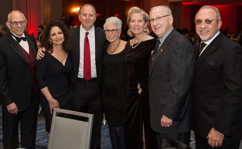 Gala attendees (from left to right): Richard Ortner, president of the Boston Conservatory, which is currently exploring a merger with Berklee; seven-time Grammy-winning singer-songwriter Gloria Estefan; Roger H. Brown, president of Berklee; Susan Berk; Linda Mason, co-founder of Bright Horizons Family Solutions (and Brown’s wife); Lee Berk, former president of Berklee; and Emilio Estefan.