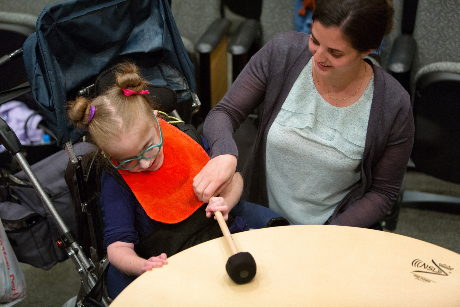 “Our philosophy is ‘total communication,’” said Megan Connaughton, who was at the workshop with one of her students, a little girl in an adaptive stroller. “We use speech, signing, photos, objects, and symbols.”