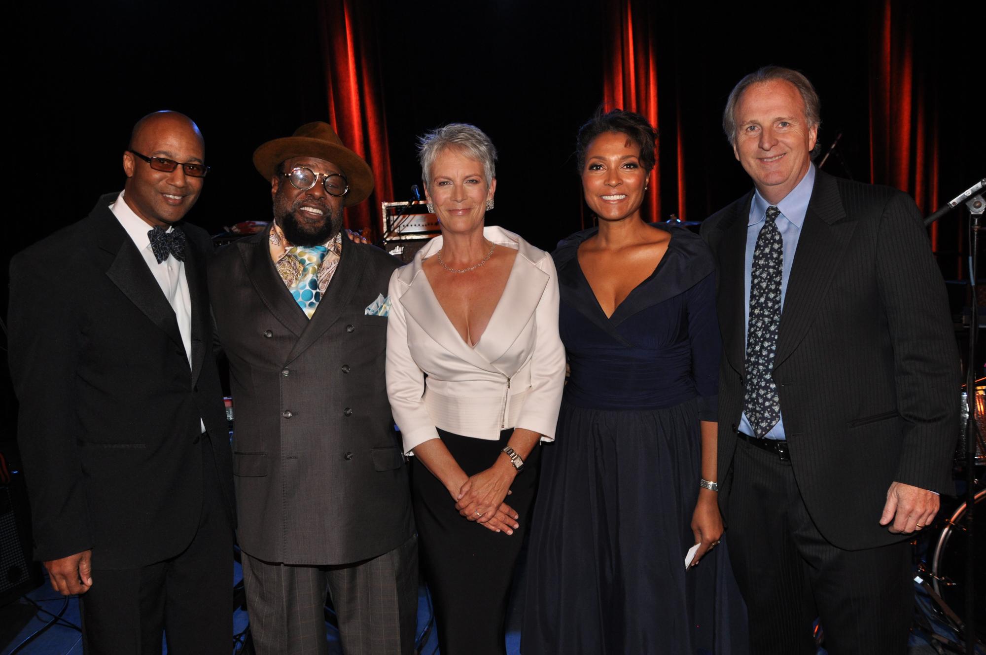 Acclaimed actor and best-selling children’s author Jamie Lee Curtis engaged the crowd as master of ceremonies while Grammy Award–winning artist, composer, and producer George Clinton H ’12 and Parliament-Funkadelic performed hits like "Flashlight" and "We Want the Funk." Legendary bandleader and trombonist Fred Wesley, a member of James Brown’s band in the 1960s and 1970s and later with Parliament-Funkadelic, performed hits from his career as well. Partygoers dined and danced to the sounds of over 150 faculty, alumni, and student musicians performing salsa, a cappella, big band, jazz, pop, and blues. Ray Greene '96, vocalist with Tower of Power, performed with Berklee's Tower of Power ensemble. Berklee alumni group Los Rumberos de Boston got the crowd dancing with its Afro-Cuban rhythms, and bluegrass artist Sierra Hull '11 performed selections from her albums.