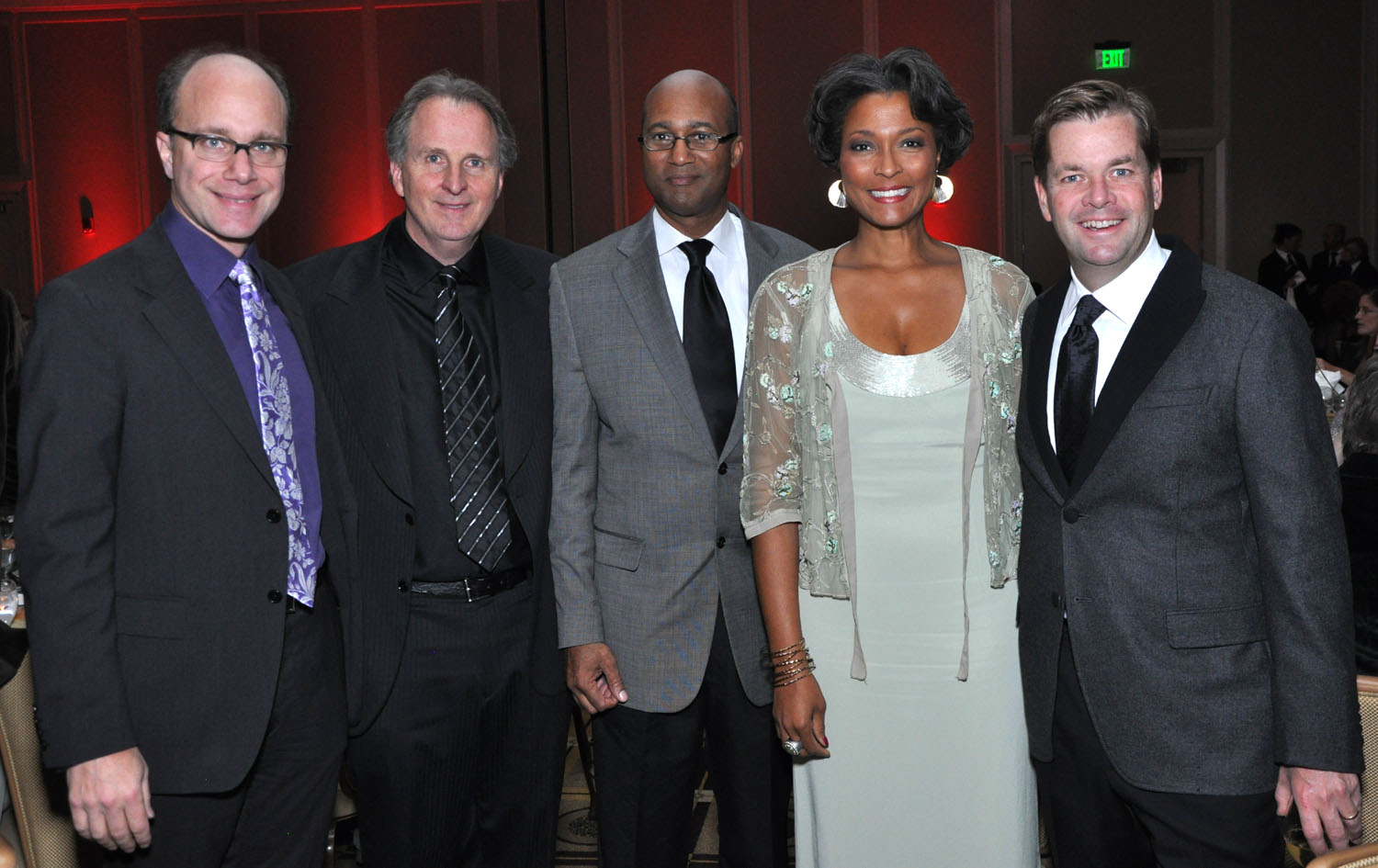 David Abrams of Abrams Capital, Berklee President Roger H. Brown, Berklee City Music Executive Director J. Curtis Warner, City Music Dean Krystal Banfield, and John Connaughton of Bain Capital pose during the 18th annual Encore Gala.