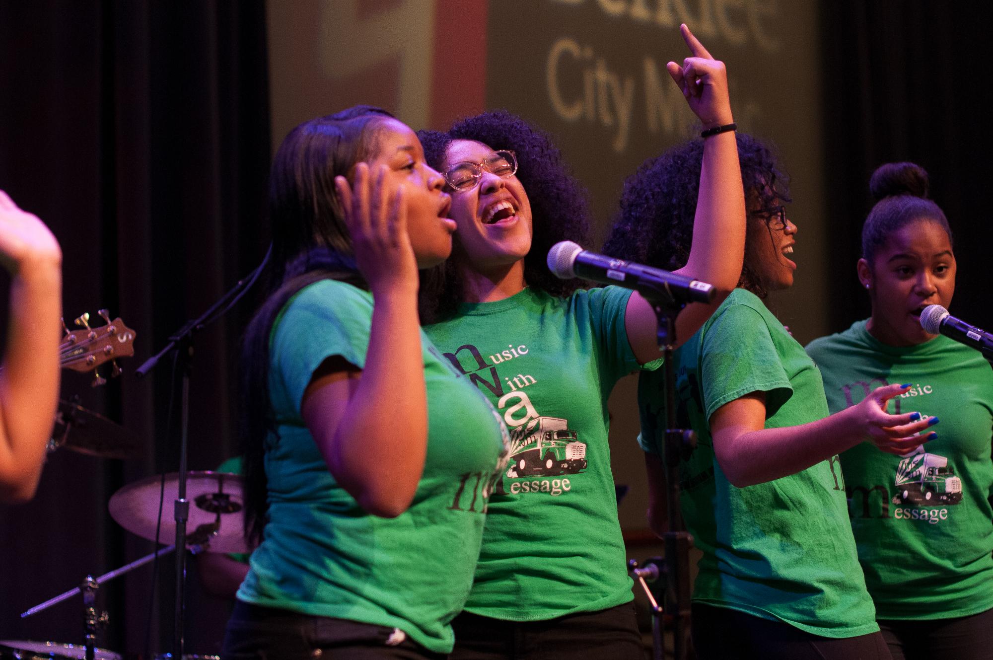 Music and Youth Development Alliance (MYDA) students from Berklee City Music Network site Renaissance Youth Center in the Bronx borough of New York City perform at the open-mic night and jam session.