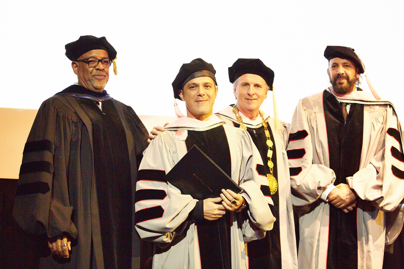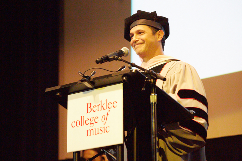 The ceremony was followed with a performance by the Sanz himself, joined by more than 40 Berklee students and faculty, who together performed hits spanning the star's illustrious career.