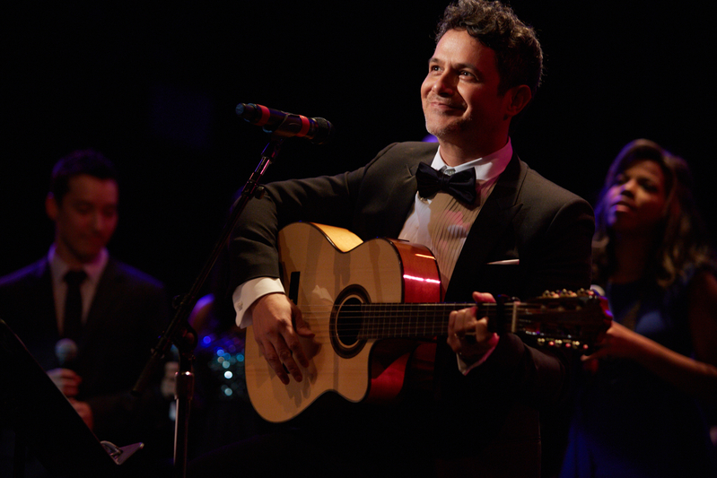 Alejandro Sanz, backed up by student performers. Pictured (left to right): Marianella Rojas, Natalia Sulca, Barbara Fonseca, Eleni Arapoglou, Valeria Añez Chirinos (behind Alejandro), Adolfo Robles, Johan Sotelo, Andres Padró, Ernesto Rodriguez, Christian Yaipén.