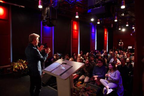 The event was moderated by Associate Professor Loudon Stearns, Gordon's longtime friend and teacher who was instrumental in the creation of the REEL, a crowd-surfing keyboard that allows fans to interact with the band at Gordon's live shows.