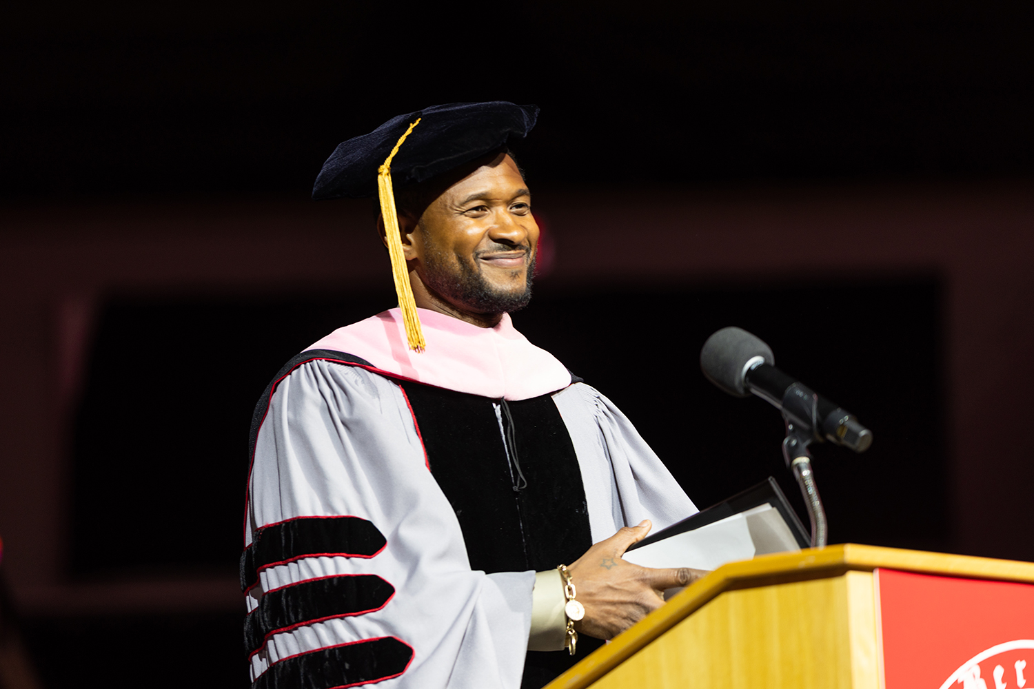 “My goal as an artist has always been to inspire people to make a positive impact through my music, to make you feel something, and last night I felt proud…of the legacy that has been built and that we’re building together as artists,” said Usher reflecting on the tribute concert from the previous evening. He continued by urging the graduating class to “keep running past that finish line [of your goals], break the barriers, identify that spark in you that motivates you to keep going, and don’t expect everything to be perfect and run smoothly. …Take what you’ve learned here [at Berklee], go into the world, and make great things.”