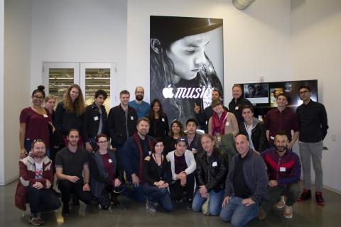In addition to Cassidy, students met and networked with alumni who work at prestigious companies including Tesla, Apple, and Skywalker Sound, as well as alumni in more traditional music careers, such as vocalist Rachel Rose '13, and road manager Lewis Robertson '13, touring with Jefferson Starship. At Apple, students learned about their culture of "only excellence," and how that is sustained throughout their brand. The vibe has attracted a growing network of Berklee alumni, some of whom shared how he or she had been hired, thanks to referrals from fellow Berklee alumni at Apple.