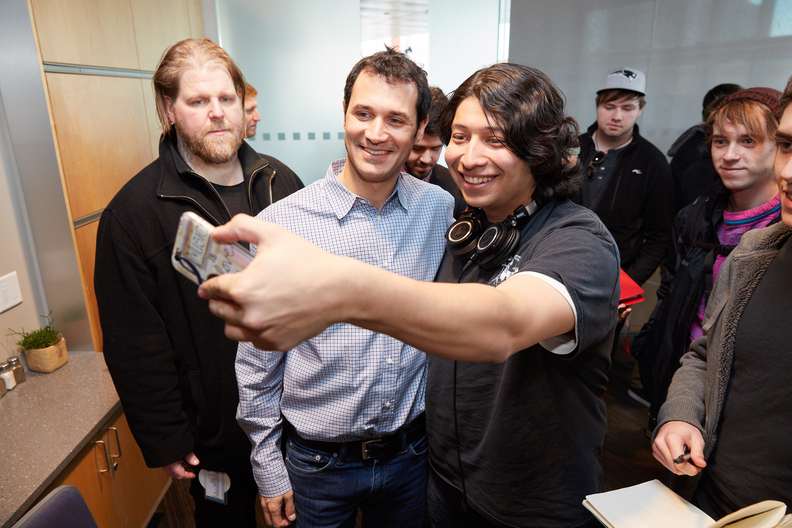 Students take photos with Djawadi after the Q and A in the Eisenson Room.