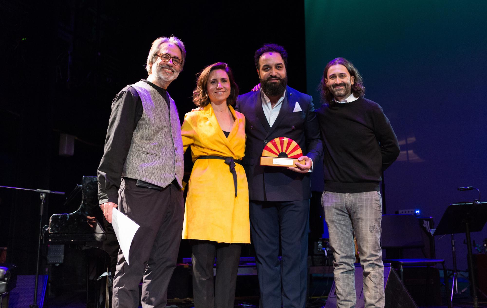 Cajón and flamenco percussion master Israel “Piraña" Suárez was presented with Berklee’s Master of Mediterranean Music Award at the Mediterranean Music Institute (MMI) spring concert, the Rhythm of Lorca. The award was conferred by María Iturriaga, executive director of Berklee’s campus in Valencia, Spain; Matthew Nicholl, executive director of the MMI; and Javier Limón, artistic director of the MMI.