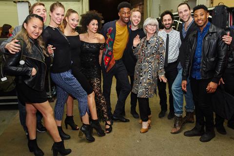 Rita Moreno '16H celebrates with Berklee and Boston Conservatory students after a performance at the 2016 commencement concert.