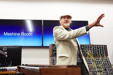 David Mash and custom Moog synthesizer IIIc at the dedication of Berklee's Mashine Room